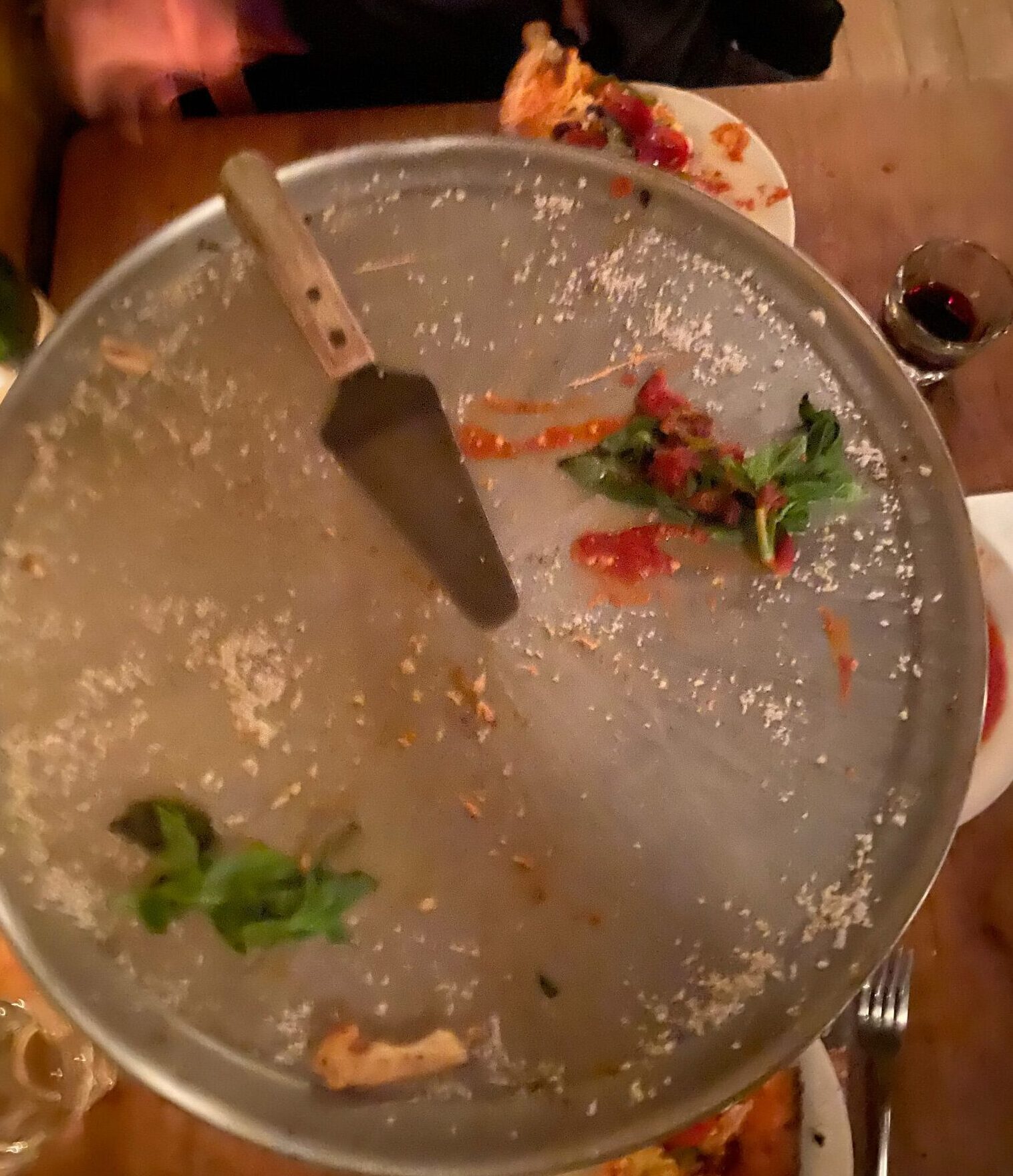 Una de los detalles que más me gustan de NYC es la cálida iluminación de los restaurantes, en Lucali la atmósfera es acogedora. Tuto y yo tenemos una vieja tradición compartiendo pizzas, nos reímos de los tiempos en los que la teníamos que partir con una regla para que estuviesen exactamente iguales.