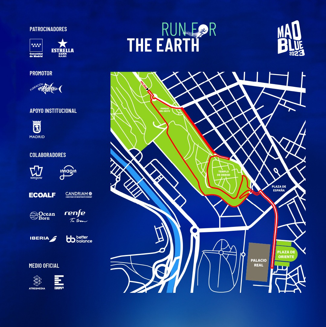 La carrera “Run for the Earth”, organizada por MadBlue con la colaboración de la Comunidad y el Ayuntamiento de Madrid, aspira a demostrar que es posible poner en marcha grandes eventos que aúnan tecnología, innovación, diversión y cultura, siendo respetuosos con el entorno y el planeta. Se trata del evento deportivo dentro de la agenda oficial de la Hispanidad 2023 y contará con la participación de deportistas de élite.